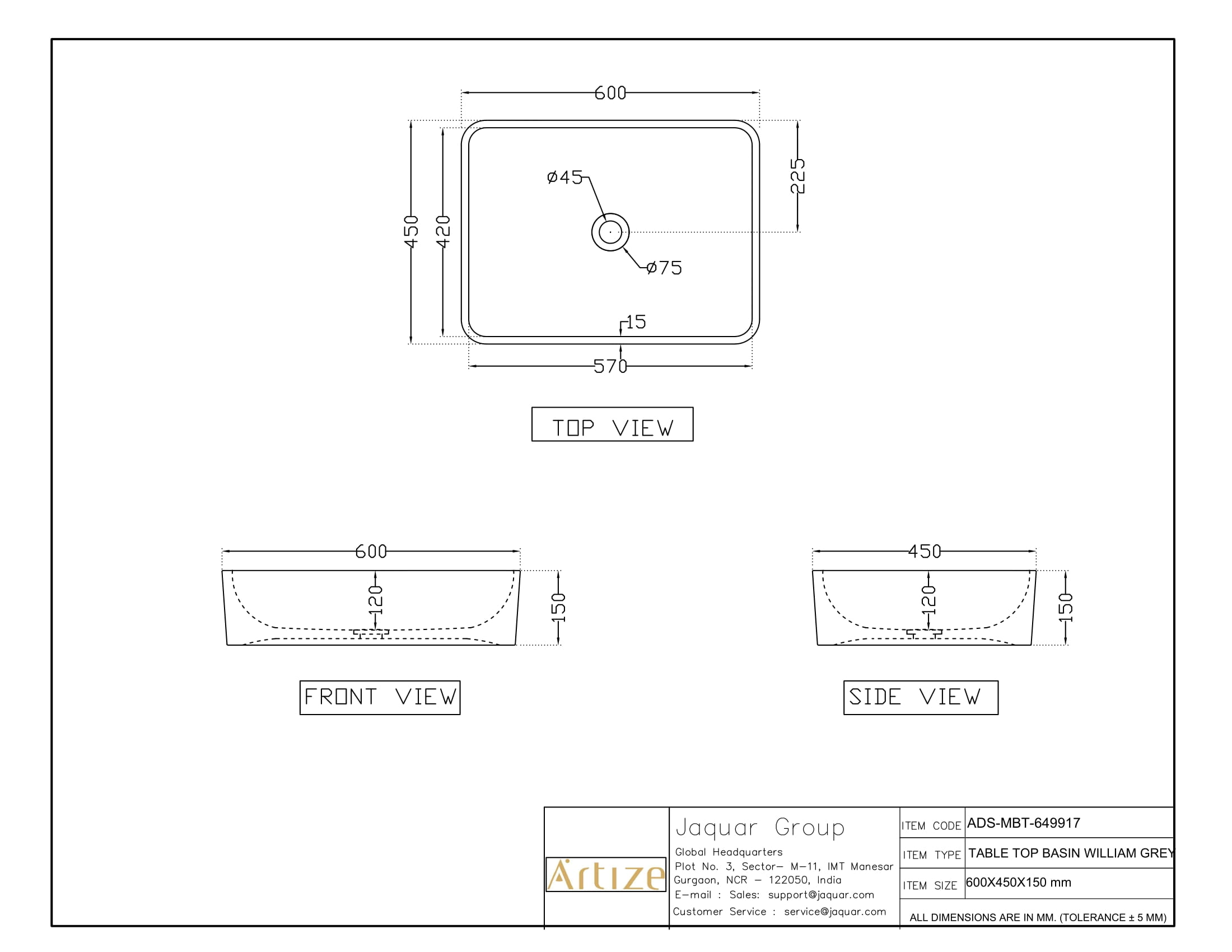 • Jaquar reserves the right at its sole discretion, to change/modify/alter any product specification at any time without notice, where improvement can be effected in design, development and dimensions.