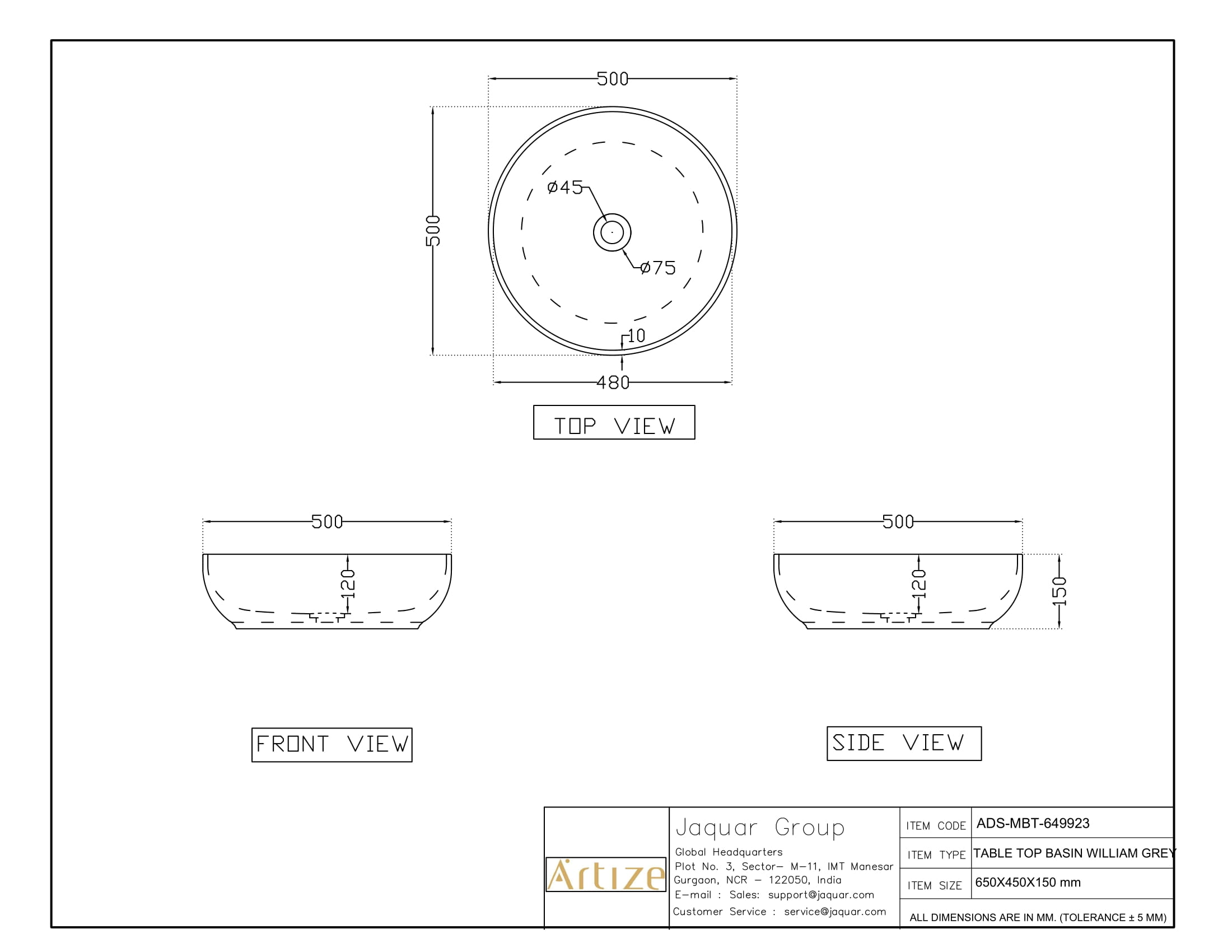 • Jaquar reserves the right at its sole discretion, to change/modify/alter any product specification at any time without notice, where improvement can be effected in design, development and dimensions.